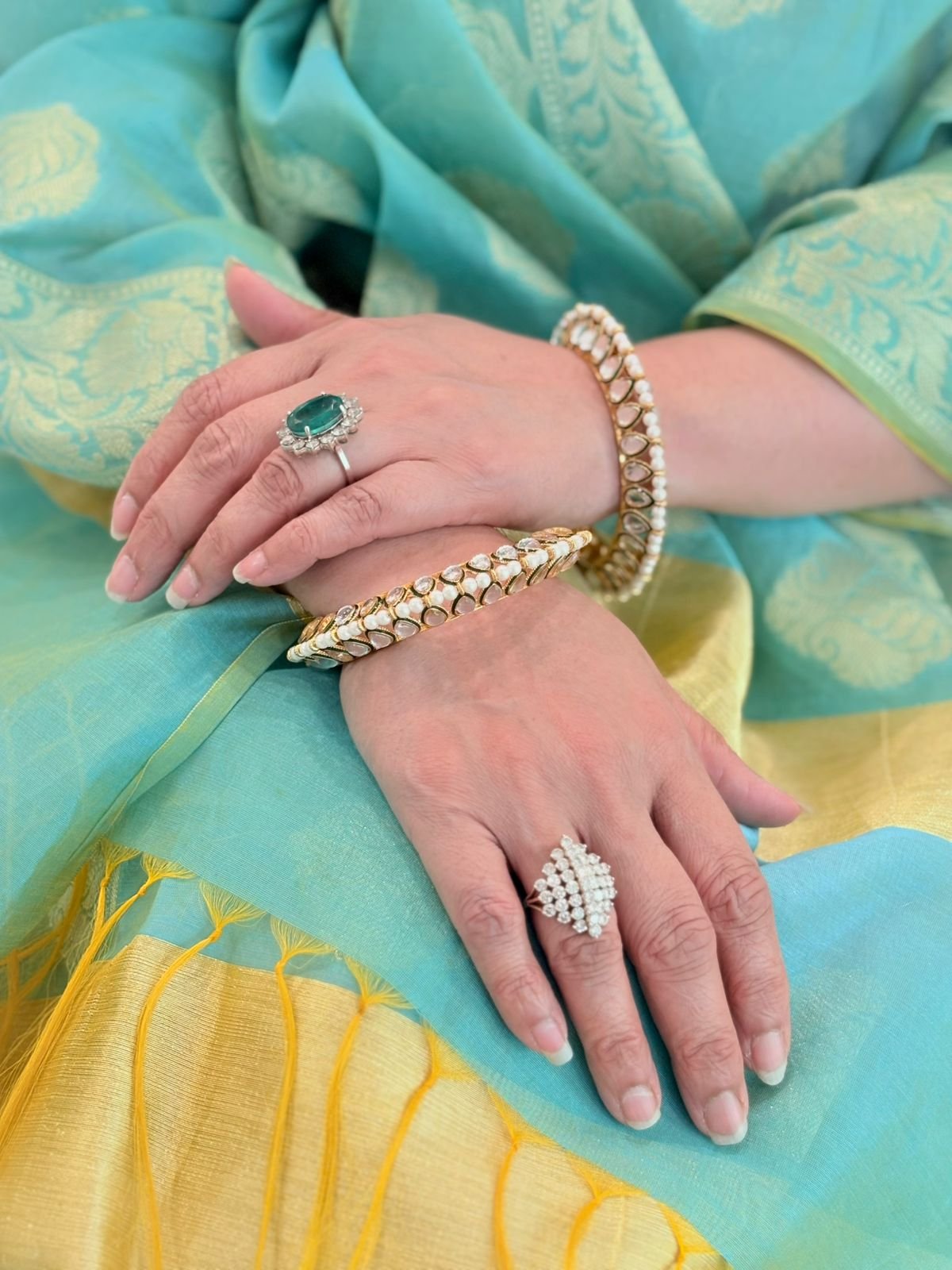 Bangles aren’t just pretty accessories — they’re a whole vibe with deep roots. In Indian culture, they stand for good luck, love, health, and all the positive energy you can think of. Traditionally, women wore bangles to symbolize happiness in marriage and to keep good vibes flowing in their homes. Plus, the soft clinking sound? It’s considered super auspicious, like a good luck charm you can wear. Some even say bangles help with blood circulation . Whether it’s colorful glass ones or classy gold stacks, wearing bangles is like carrying a little piece of tradition, beauty, and energy with you everywhere.