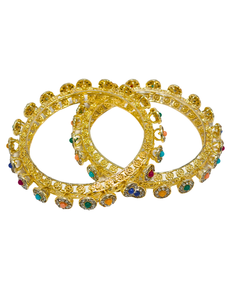 Broad Golden Bangles with Stone & Beaded Design Set