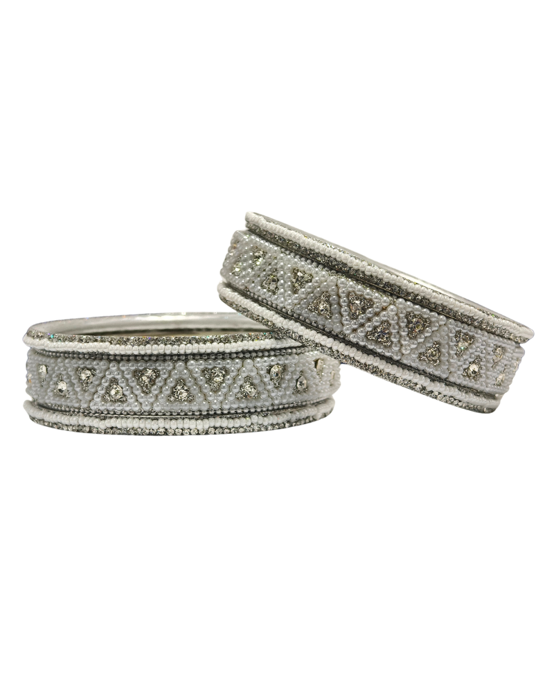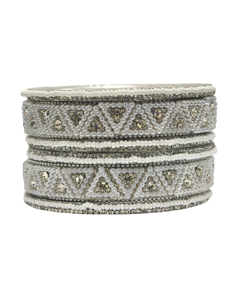 Silver Triangle Pearl Designer Bangle Set
