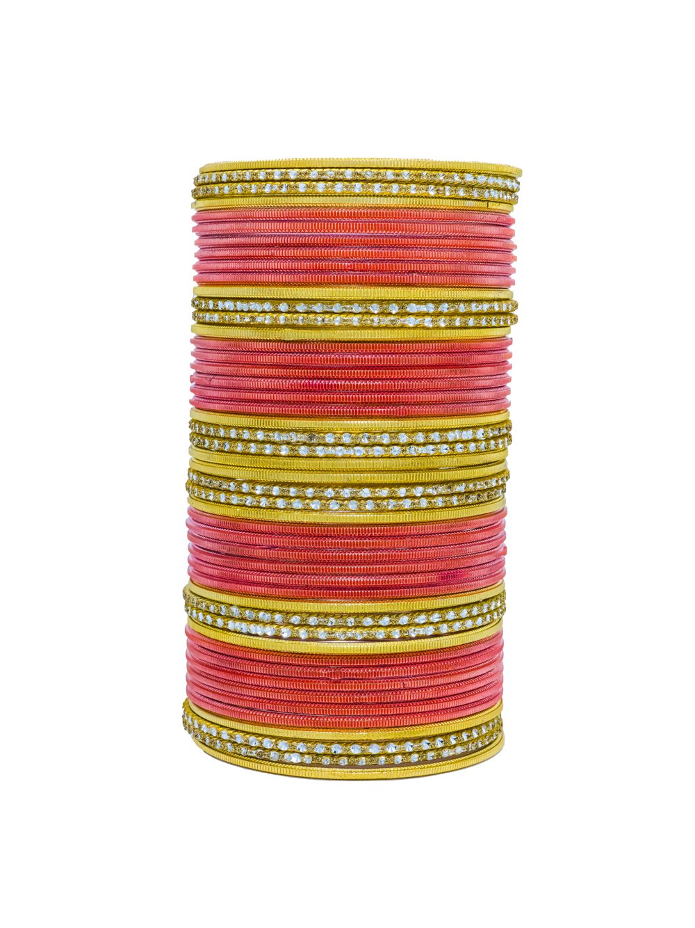 Elevate your style with this stunning 48-piece metal bangle set, designed with a perfect balance of tradition and elegance. The set includes 24 Light Red bangles, 12 golden bangles, and 12 silver bangles, all crafted with premium-quality metal and enhanced with sparkling stone work. Durable yet stylish, this collection is versatile enough for both everyday wear and festive occasions.