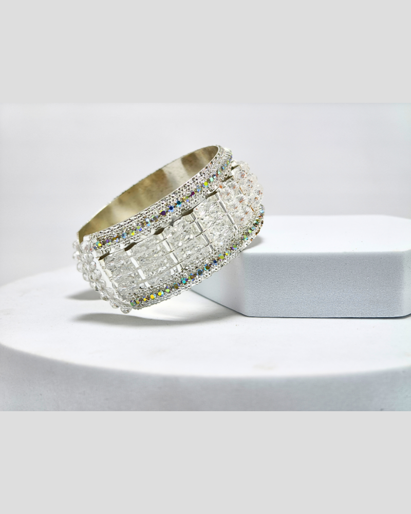 This is a Designer Free-Size Bracelet, crafted with shimmering mirror work and crystal-like shiny effects that catch the light beautifully with every movement.